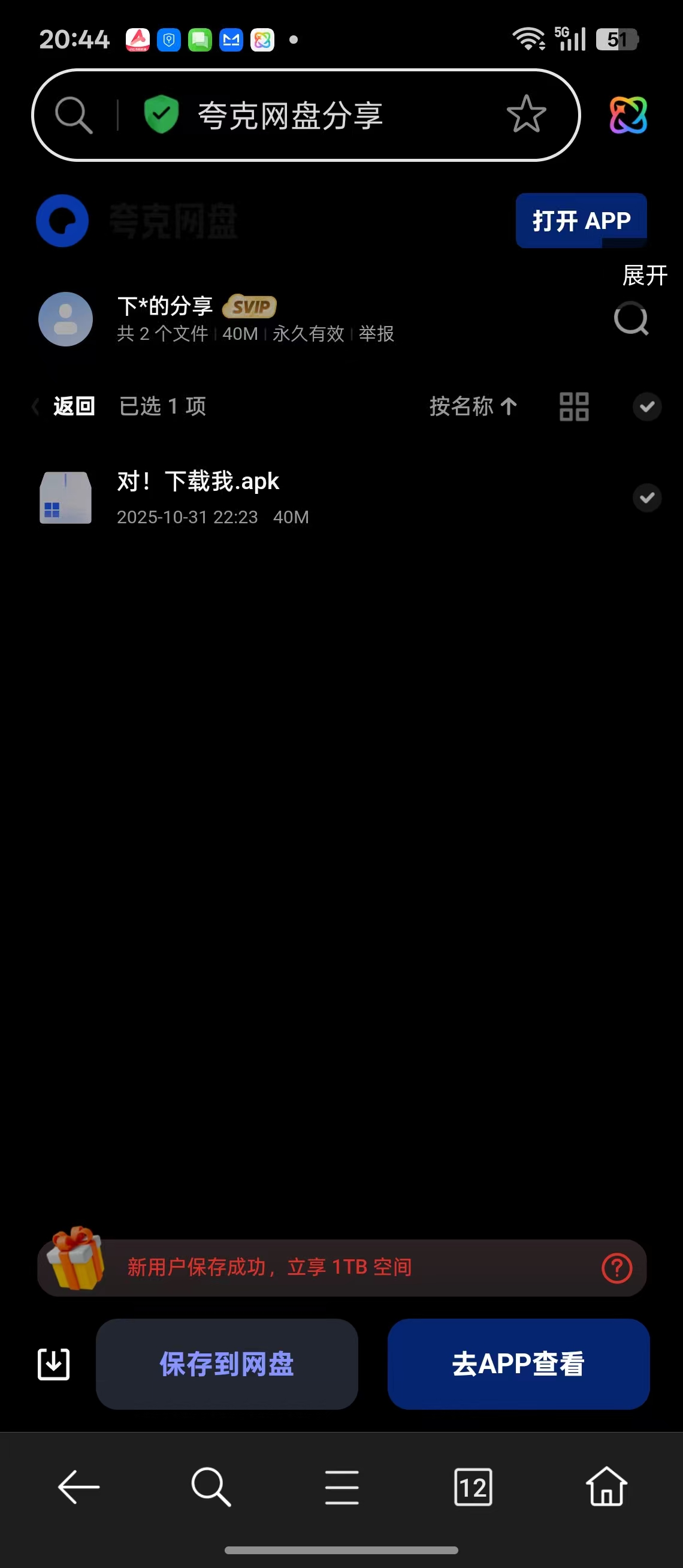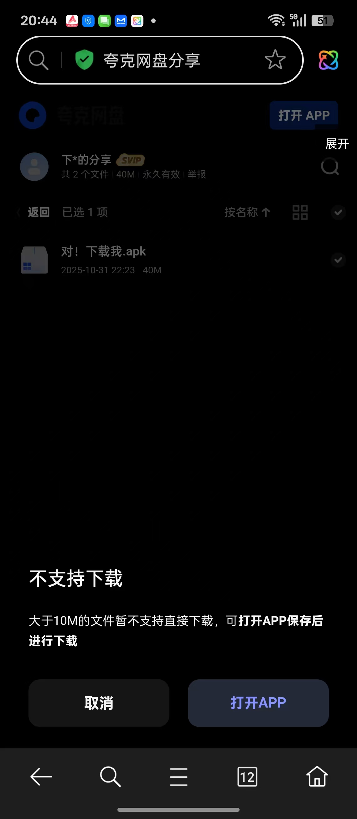 选中apk后,点击左下角的下载文件即可。 夸克网盘或者uc网盘
