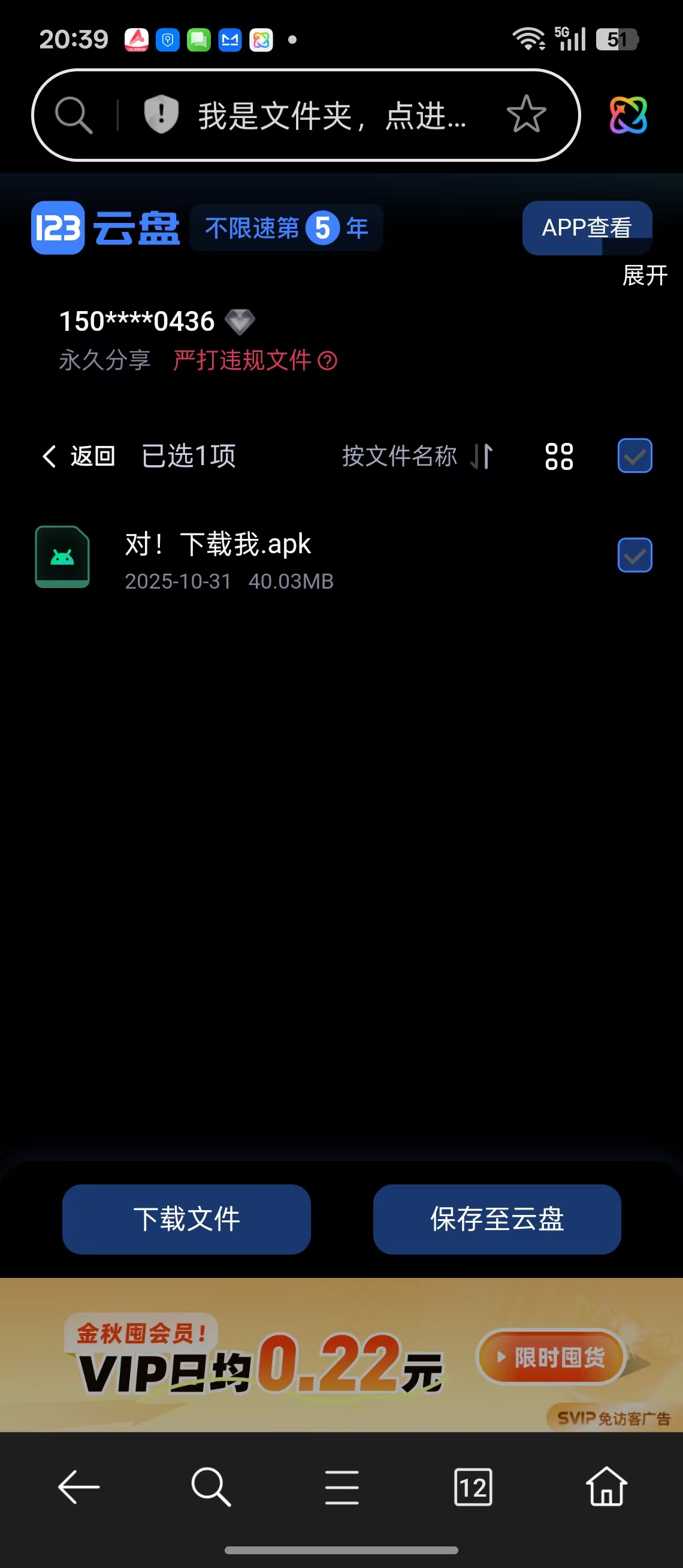 选中apk后,点击左下角的下载文件即可。 夸克网盘或者uc网盘